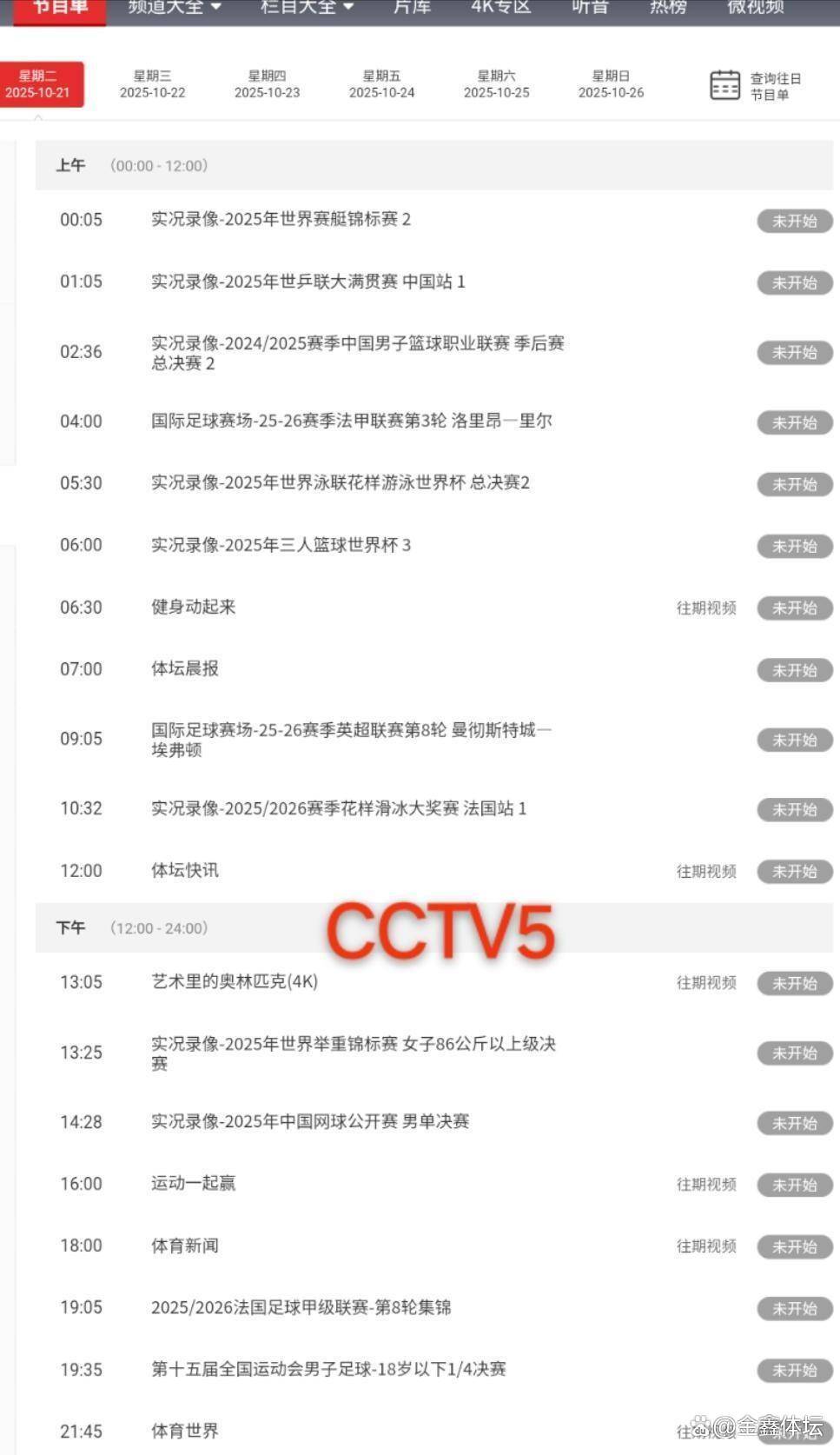 CBA中文网——中国男子篮球职业联赛赛程比分+球队数据+盘口分析精彩赛事!10月21日晚间20:305套CCTV5、CCTV+5直播节目单