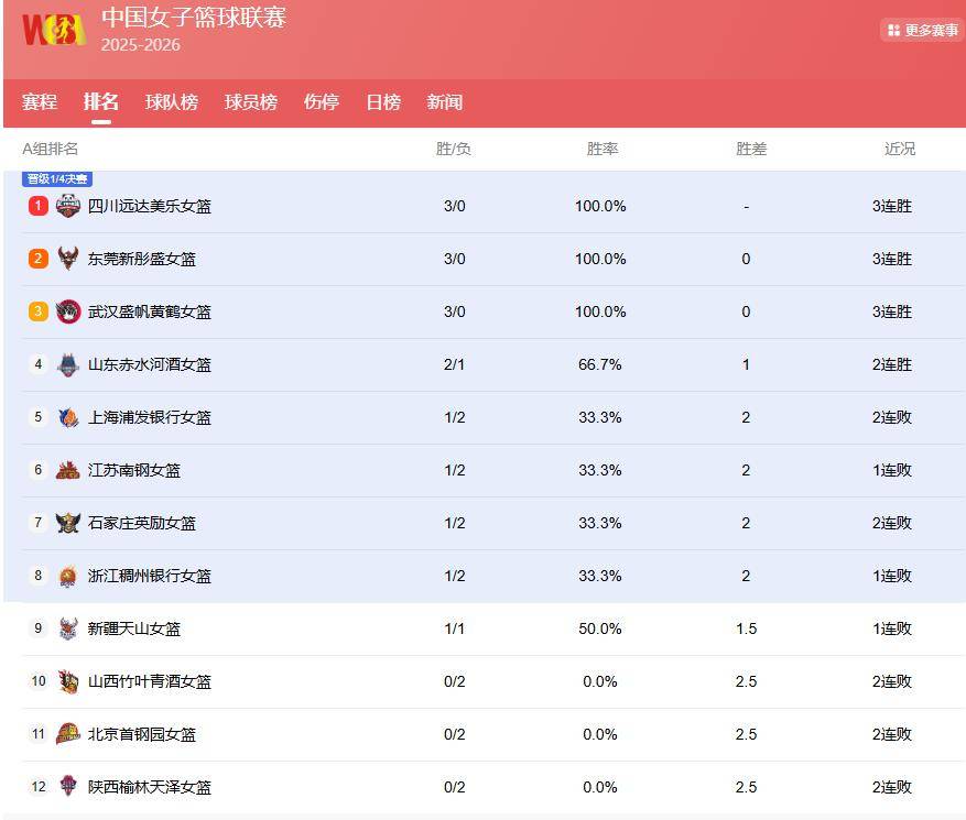 WCCBA中文网——中国男子篮球职业联赛赛程比分+球队数据+盘口分析BA积分榜最新排名出炉!前3很稳定夺冠大热门遭两连败