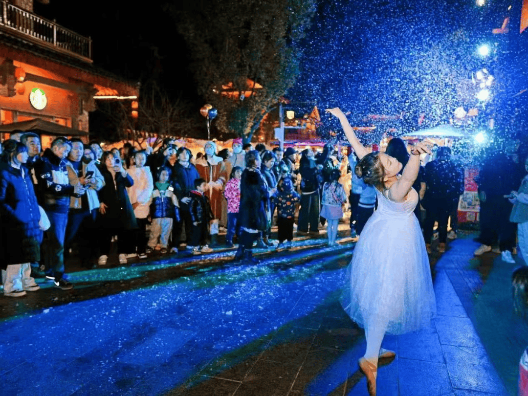该剧以先锋马戏与互动戏剧为特色,结合奇幻舞台效果与沉浸式剧情,带领观众进入充满想象力的戏剧世界。同期上演的“唯美高空芭蕾”,则以优雅的空中舞姿搭配人造初雪特效,在浪漫氛围中定格城北初冬的第一份感动,为市民带来极具视觉冲击力的艺术享受。