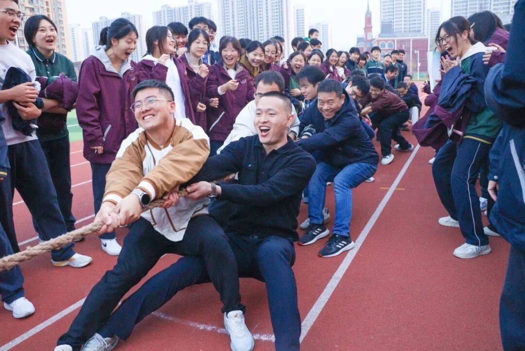 11月12日,校园拔河比赛火热举行,师生同场竞技,在欢笑与呐喊中增进情谊,舒缓学业压力。