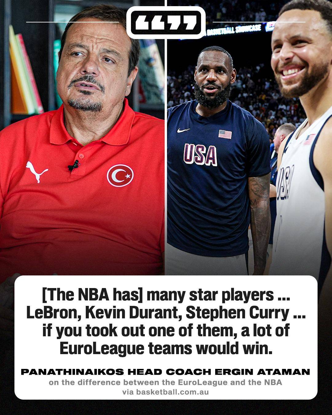 近几年,阿塔曼并非首次公开表达这类看法。他坚称NBA的总冠军不能被视作世界冠军的等同标准,并在最近的一次采访中再次重申了这一立场。他进一步解释道:“我早就对人们说过,如果把NBA球队中的一名明星球员抽离,很多欧洲联赛的球队其实完全具备击败对手的实力。”他还回忆起两三年前的季前赛阶段,欧洲球队与NBA球队多次对阵,据他印象,欧洲球队在这些交手中取得了相当可观的胜率,大约在七成到八成之间。