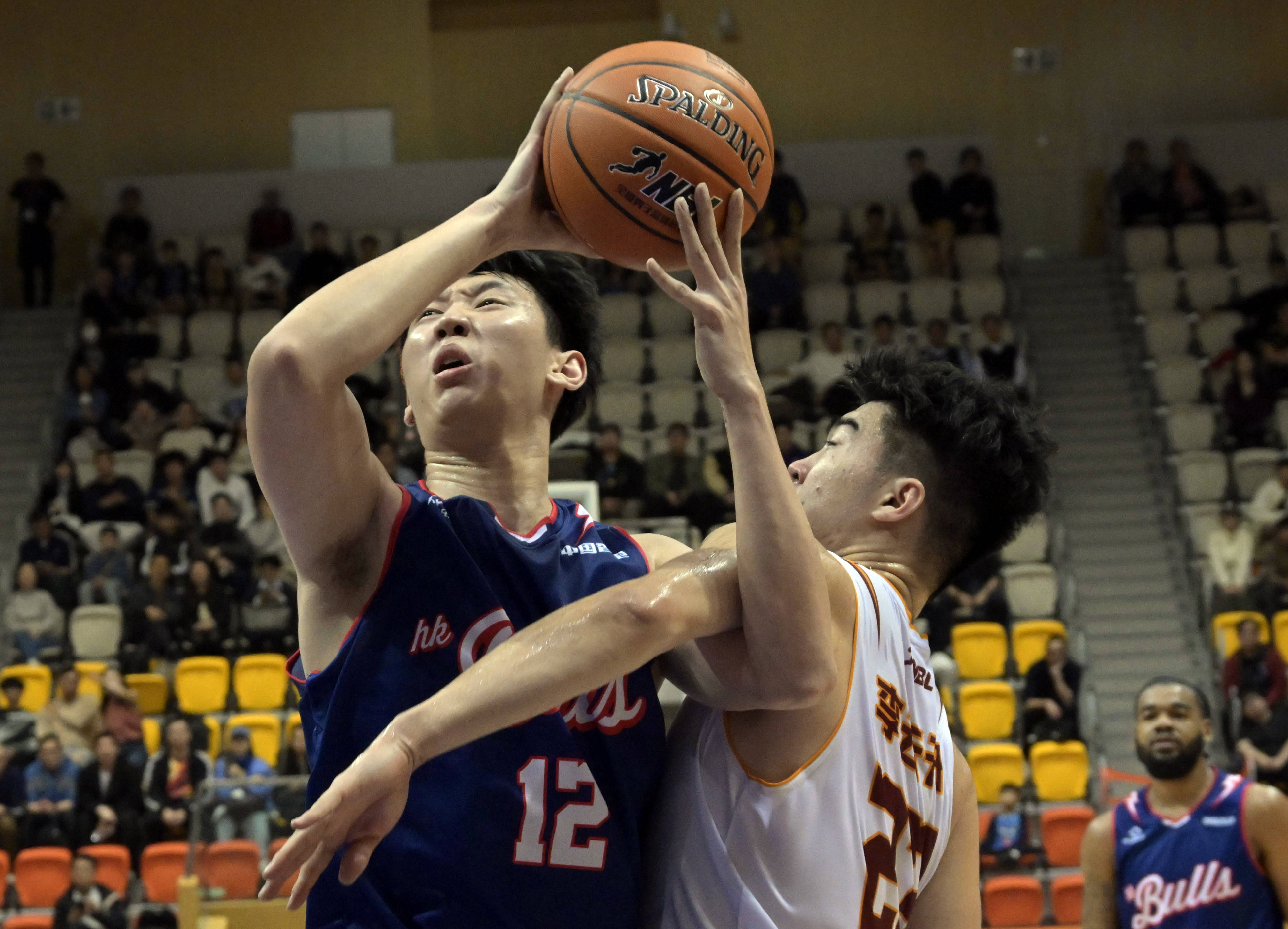 1月27日,香港金牛队球员曲虹霖(左)在比赛中上篮。 新华社发(卢炳辉摄)返回搜狐,查看更多